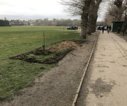 Wimbledon Park Flower Bed Digging to Protect new Hornbeam Whips